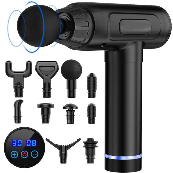 Rechargeable Massage Gun 30 Speeds 10 Heads Customizable Black